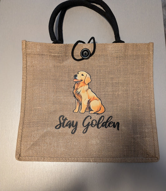 Doodle Mama, Stay Golden,Guinea Yoga, Black Dog Tote Bag