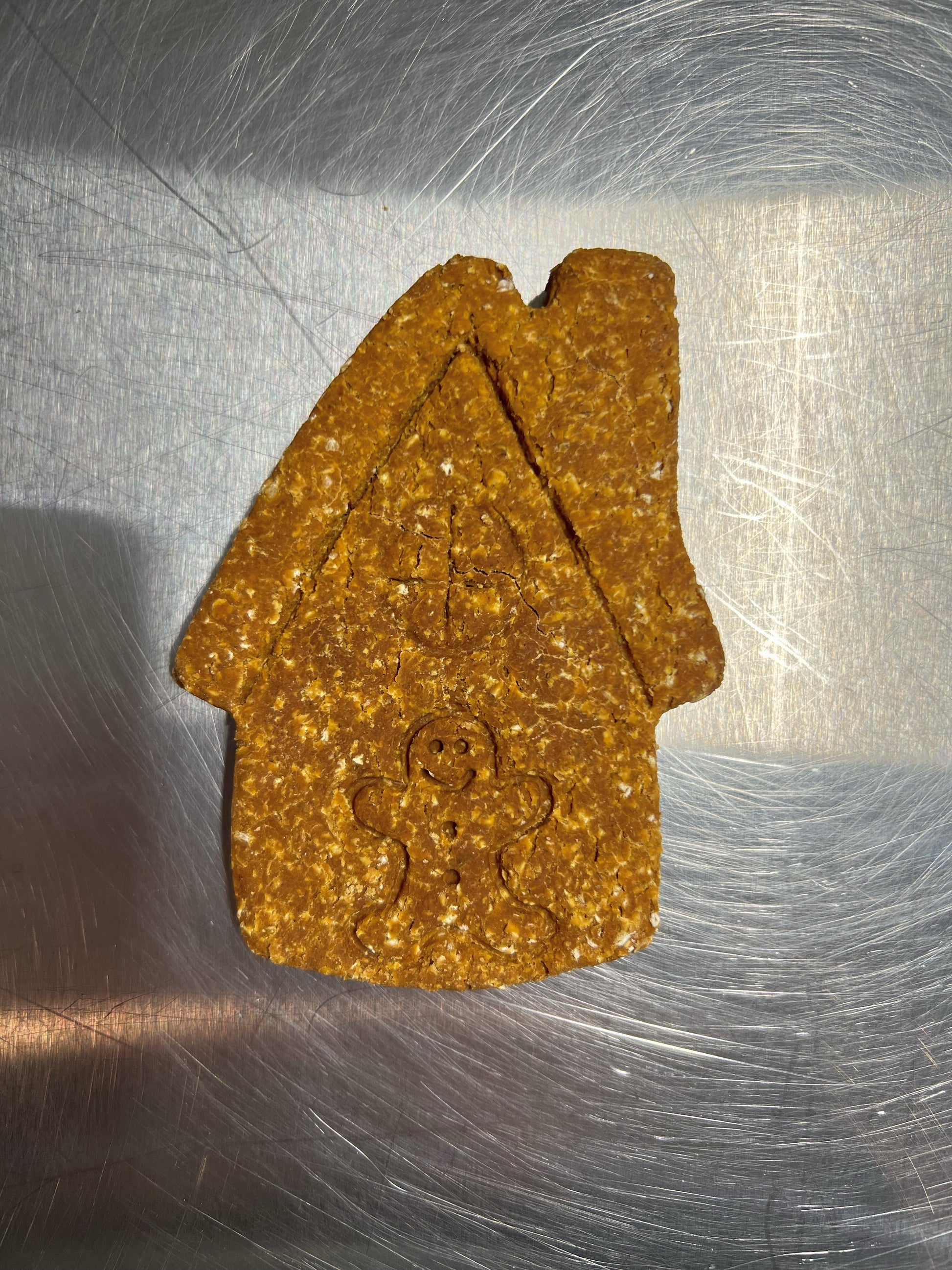 A yummy gingerbread house! Chickpea flour, Oats, Pumpkin, Cinnamon, Ginger, Yogurt. 3" x 4"
